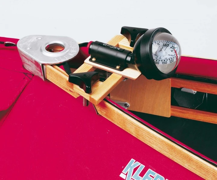 Kompasshalterung aus stabilem Sperrholz mit Befestigungsschrauben aus Edelstahl, wird auf den Süllrand geklemmt.