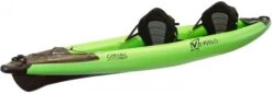 Packraft inkl. aufblasbarem Sitzkissen, Wildwasser-Rückenlehne, ultraleichter, abnehmbarer Spritzdecke, Cargo Fly-Packreißverschluss (im Schlauch liegendes Packfach), Packrucksack aus reißfestem Polyester, Doppel-Kajakpaddel mit Aluminiumschaft und Nylon-Blättern (4-teilig, 230 cm), Inflation Bag (Pumpsack), Reparatur-Kit.